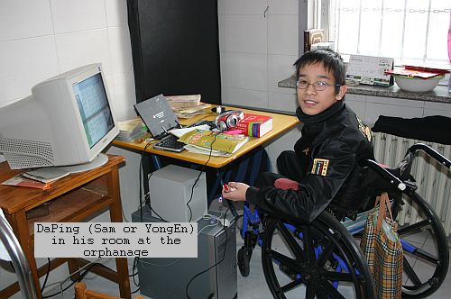 The most involved of needs of Sam (I think he prefers this name so I’m going to try to switch!), is his physical condition. He was born with spina bifida, a dislocated hip and club feet. Because of the surgery to correct the spina bifida, done when he was a baby, he is unable to feel from his knees down. Neither his dislocated hip nor his club feet have not been corrected but I’ve been corresponding with a group in the States that offer corrective surgery for club feet. Unfortunately, they insist that his dislocated hip be corrected prior to surgery on his feet and they specialize in feet only. They’ve asked for a medical assessment of his hip and feet and that will require an MRI ($500) and maybe other tests. He is now fourteen years old and too old to be adopted so he will be living in China where being in a wheel chair is not an easy thing in the general outside world. We feel that we would be selling him short if we didn’t pursue every avenue to help him enjoy a decent life and that is why I am asking you to consider helping us financially to see what is possible for him physically. At the same time, we are investigating all avenues to see that his education is not neglected. He is taking an online assessment test to determine where he is in Math and English so we can start home schooling with him. I appreciate the advice I’ve already gotten on this subject. Thanks to everyone that has responded to my urgent pleas for help!