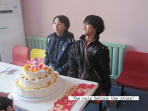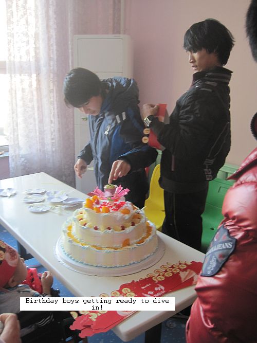 This is the time of year when some Chinese guys that MUST own a bakery appear with the most amazing birthday cake to help everyone, not only those with December birthdays, share the birthday of the MOST important December baby: Jesus Christ! Since our three school boys either had just turned sixteen or would soon in the new year, they were invited to be special guests, too! As you can see, the cake was an extravaganza and was accompanied by an equally amazing assortment of other baked goods AND fruit of every kind!