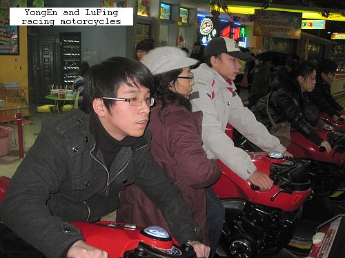 After the movie, we decided to look around the mall a little and happened to find a huge electronic game arcade! This appealed to our boys as well as the young Chinese so we indulged ourselves for quite a while with the young Chinese providing the boys with all the tokens they could use! It was fun for the boys that are so limited in what they can do physically to actually sit astride real looking (and acting) motor bikes and cars as the motion on the screens in front of them led them on very realistic chases of all sorts! After a while, we were able to disengage them and get them back in taxis for the ride back home. It had been an exciting day, overall, and I’m sure we all slept very well that night. I know I did!