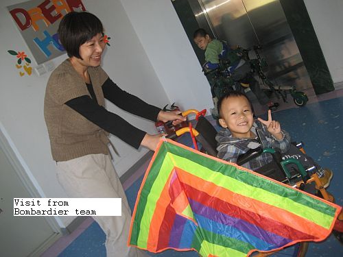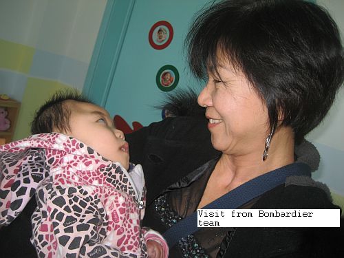 After some unavoidable delays because of Migyeong’s recuperation period, the team from our friends at Bombardier finally made it for a visit to the orphanage much to the delight of our kids! I didn’t make it due to puniness but the photos tell the whole story, I think! I DID make it to the orphanage several times, mostly to transport Migyeong or visitors. The kids seem to be doing well and seem very healthy. A newish addition to our staff is the new massage lady that comes during the week days. Her work can only aid in the flexibility of the kids with cerebral palsy that can be very stiff because of their condition. Another breakthrough made possible by her is that since her husband is a taxi driver in the nearby town of ZaoHuaCun, he can be counted on to transport Migyeong from her building at the orphanage to home, particularly once the ice and snow become a way of life! This has been a big relief to me! In some ways, I think her accident has affected me as much as it has her, one manifestation being me feeling a little crazy when I think of her slogging through the white stuff and then taking whatever happens along in the way of vehicles to get her back home! You can see why I am now relieved to know that there is a safe and convenient way! Yeah!!