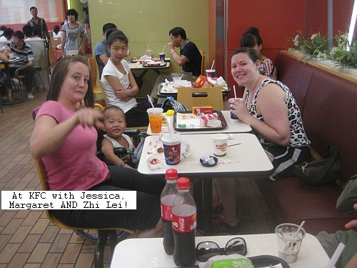 The other volunteer, Margaret, had been living in China this summer interning for her college degree and just wanted to experience a Chinese orphanage! We also hit it off right away and had many good times going out to the orphanage and playing with the kids. We even joined up sides one Saturday with Jessica and took Zhi Lei to KFC for lunch including “bing qi ling” or ice cream for those lacking in Mandarin! We were tempted to just steal him and run off for the rest of the day! We didn’t want him to miss his Chinese fans back at the orphanage waiting for him, though!