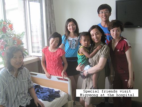 I would be remiss if I didn’t mention that the administration of the orphanage played a major part in Migyeong’s care and comfort in the hospital. The President of the orphanage just happened to be a good friend of the President of the hospital so before we knew it, she was in a PRIVATE room with a BATH rather than the six bed ward she started off in! Also, the Manager of the Children’s Building was a frequent visitor and her college aged daughter along with her boy friend stayed one night with Migyeong after she was re-admitted too late to get the private room again. We are so blessed by the kindness of our Chinese friends. We truly love them all and feel like we have a special family relationship with them, now more than ever.