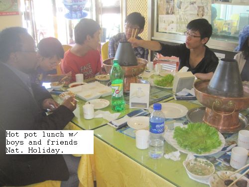 October is always an interesting month here in Shenyang as we wait to see what the weather will “bless” us with until the heat is turned on November 1. Well, today IS November 1 and although the heat doesn’t seem to be surging and heating up the place, thanks to abundant sun pouring in along with basically nice weather in the 40’s outside and nearly 70F inside, we are comfortable and have been informed that the management is working on getting the heat coming. Which is particularly timely as our friend, Debby, from the States is arriving this evening for a short stay!