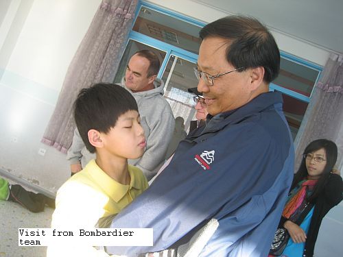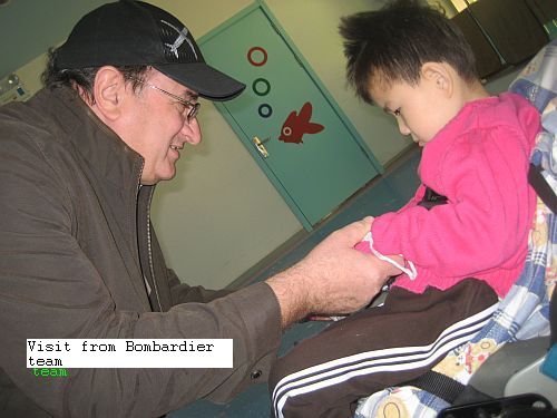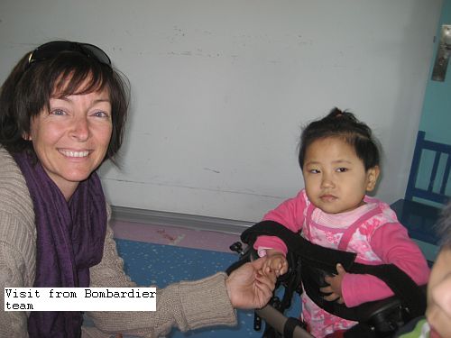 After some unavoidable delays because of Migyeong’s recuperation period, the team from our friends at Bombardier finally made it for a visit to the orphanage much to the delight of our kids! I didn’t make it due to puniness but the photos tell the whole story, I think! I DID make it to the orphanage several times, mostly to transport Migyeong or visitors. The kids seem to be doing well and seem very healthy. A newish addition to our staff is the new massage lady that comes during the week days. Her work can only aid in the flexibility of the kids with cerebral palsy that can be very stiff because of their condition. Another breakthrough made possible by her is that since her husband is a taxi driver in the nearby town of ZaoHuaCun, he can be counted on to transport Migyeong from her building at the orphanage to home, particularly once the ice and snow become a way of life! This has been a big relief to me! In some ways, I think her accident has affected me as much as it has her, one manifestation being me feeling a little crazy when I think of her slogging through the white stuff and then taking whatever happens along in the way of vehicles to get her back home! You can see why I am now relieved to know that there is a safe and convenient way! Yeah!!