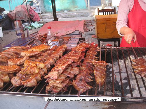 We have only made it out to the night market several times, too. Thought I would include a couple of interesting pics to show you all a little of what we have to choose from! I passed on the chicken heads, of course! The veggies and fruit are really spectacular and super fresh, though!
